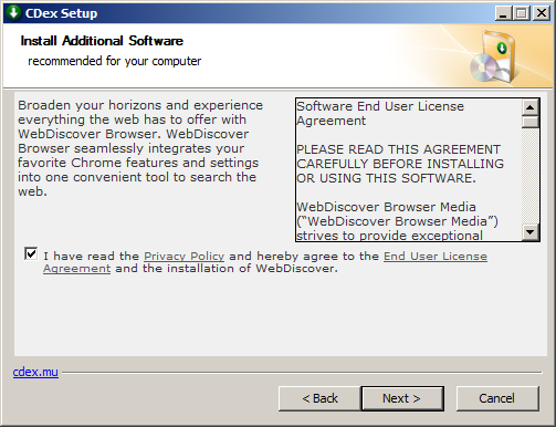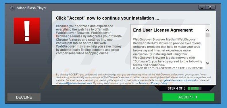 WebDiscover is mostly installed through other programs as an opt-out. This means that most users did not want to install this browser, and were tricked into doing it by other software's installer programs. For example[2]: [1] [2] [3] [4] [5] [6] [7] [8] [9] [10]